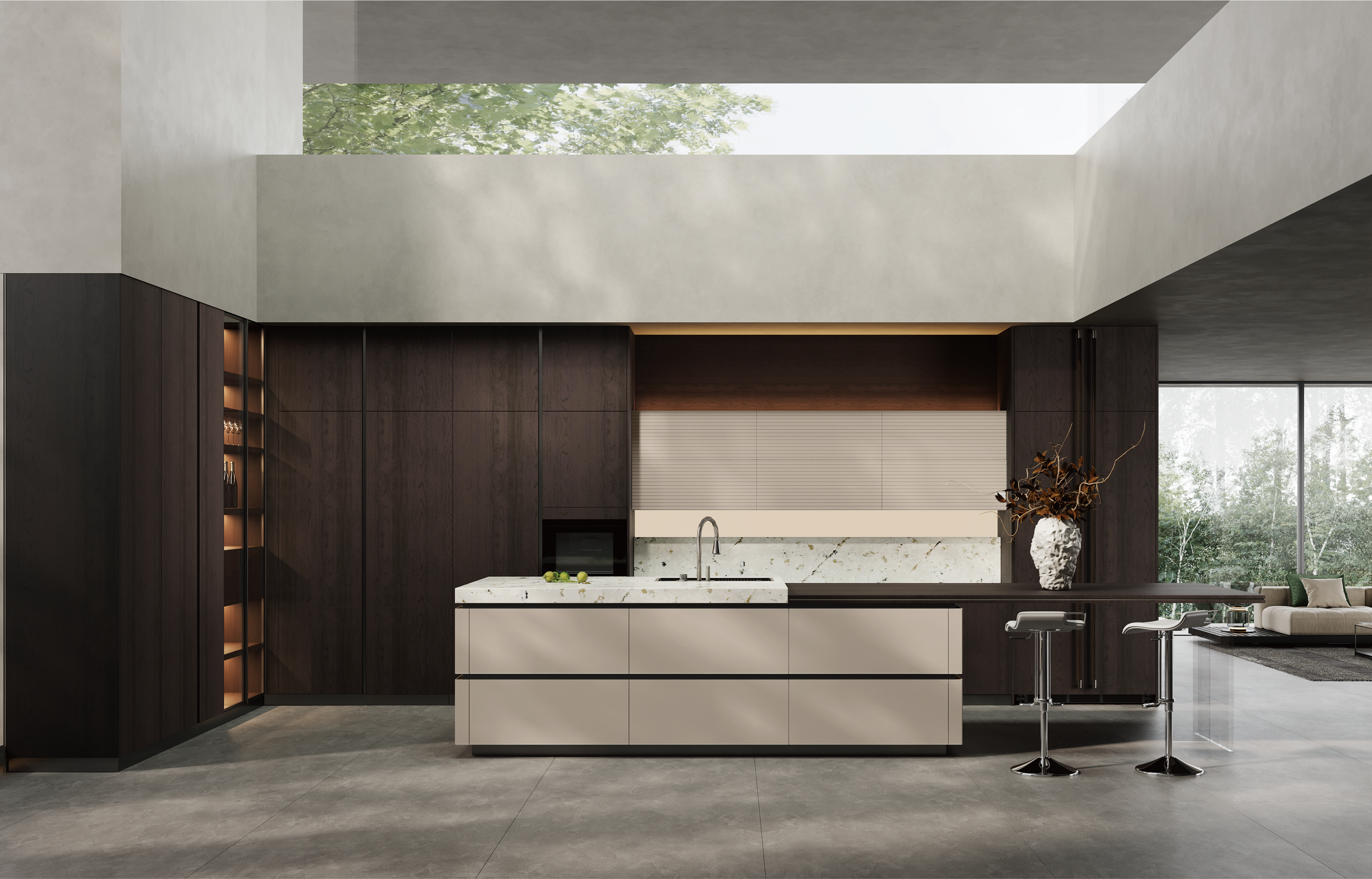 通过金百利厨柜量体裁柜,定制出适合主厨下厨的烹饪区和洗涤区的舒适高度。